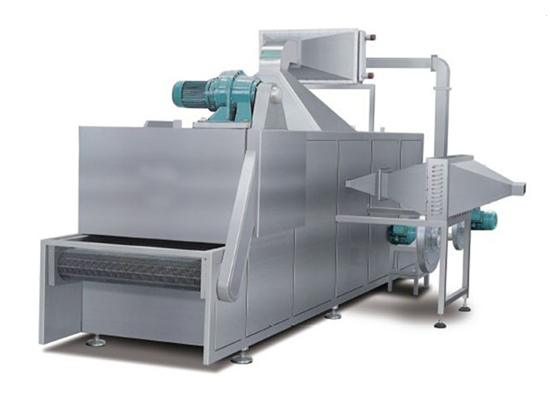 (3)多層帶式干燥機:多層帶干機常用于干燥速度要求較低、干燥時間較長,在整個干燥過程中工藝操作條件能保持恒定的場合。層間設置隔板以組織干燥介質的定向流動,使物料干燥均勻。多層帶干機占地少,結構簡單,廣泛使用于干燥谷物類物料。但由于操作中要多次裝料和卸料,因此不適用于干燥易粘著輸送帶及不允許碎裂的物料。